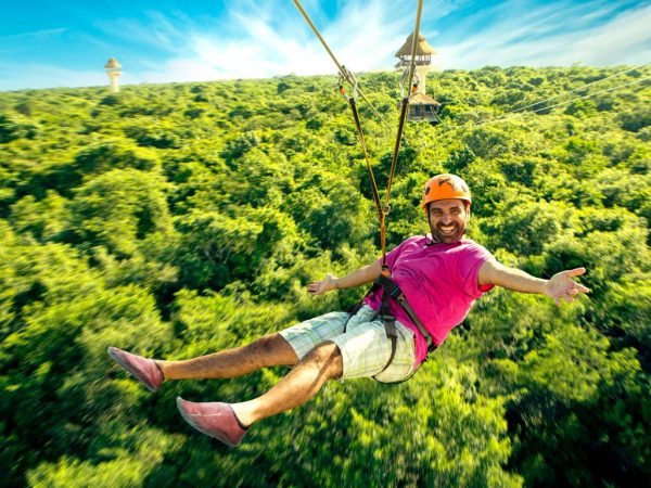 • K’aak’: Cenote abierto con tirolesas y saltos de altura.